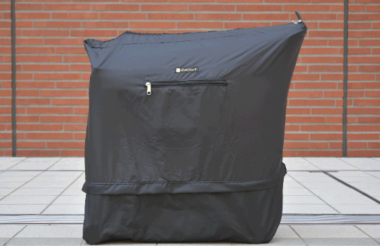 折り畳み状態のブロンプトン全体を覆うようにフルカバーした状態から、