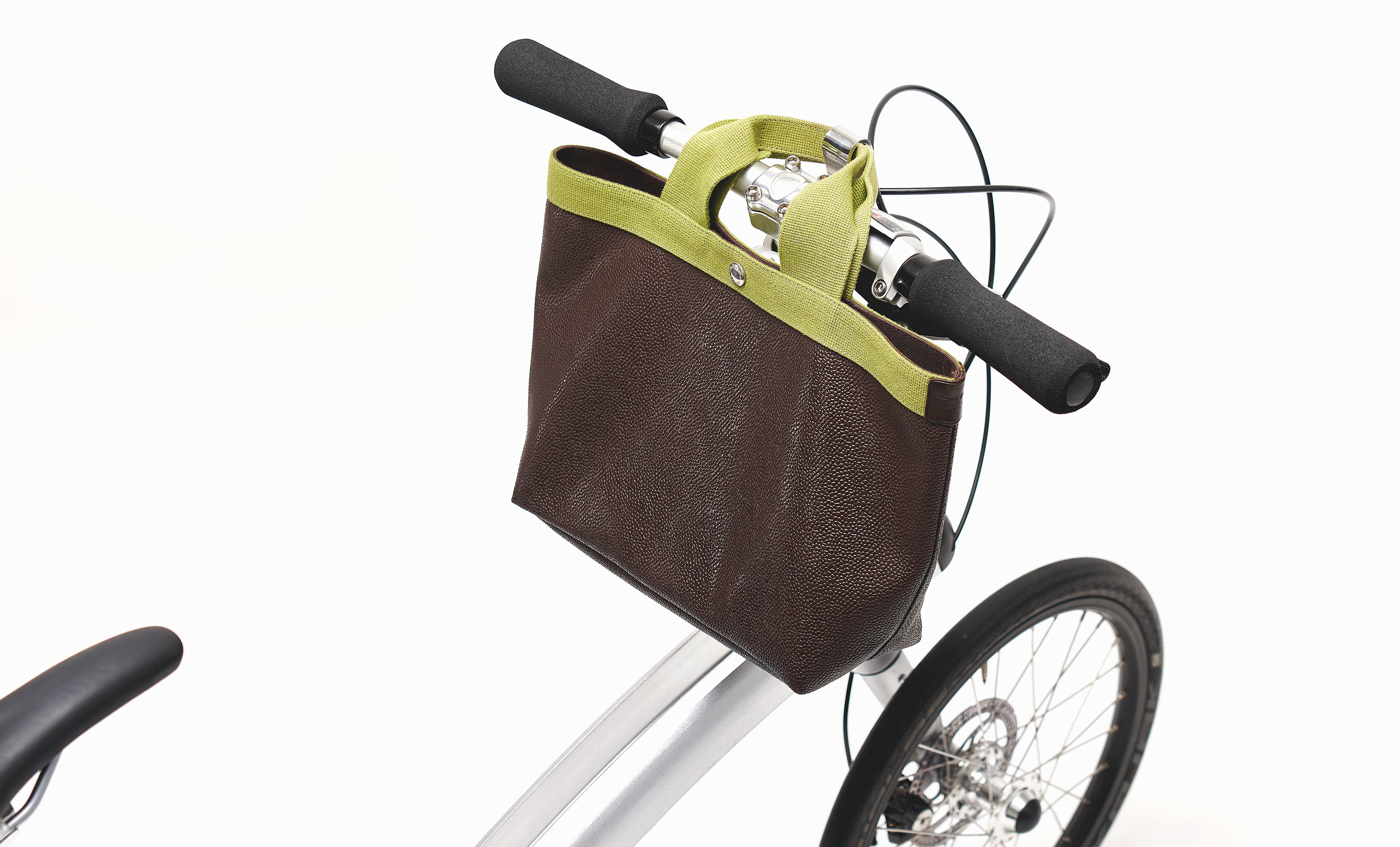 小径自転車に特有の、ハンドルポストの前後のスペースを、バッグを吊るすスペースとして活用します。