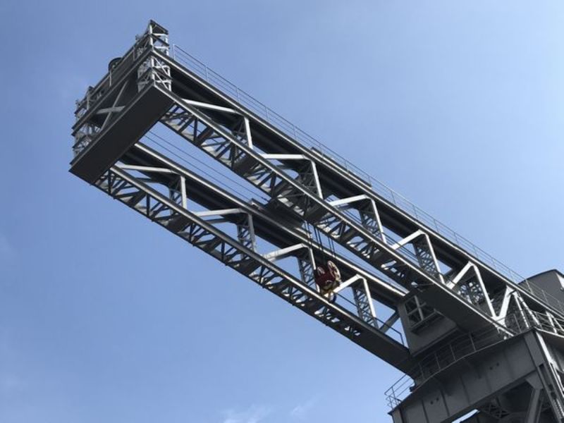 最大50トンまでの鋼材や重量物を運ぶことができ、金づちに似た形状から「ハンマーヘッドクレーン」と呼ばれていたとのこと、